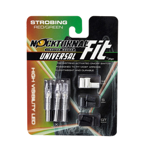 Like all Nockturnal nocks, the Fit is guaranteed to reliably activate immediately when the string is released, and it can be switched off quickly and easily with the newly designed Nockturnal Nock Tool, a small screwdriver, or most broadhead tips via an opening in the side of the nock. With 20+ hours of lithium battery life, each Nockturnal Fit weighs approximately 25 grains and will remain brightly lit for plenty of time of arrow retrieval and can be easily spotted in daylight or darkness.