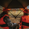 The Insight See-Through Hub Blind from Barronett Blinds® features our View-Through Fabric from floor to ceiling on three walls. This unique perforated fabric allows you to stay concealed from your prey while maintaining a clear view of your surroundings. Even the slightest movements can ruin a hunt, but this blind keeps you hidden in plain sight. The silent and adjustable panoramic front shooting windows provide you with the perfect vantage point, allowing you to take your next shot with ease, while the rear peek window offers additional viewing. Easily load your gear in using the two vertical corner doors that allows you to flip up an entire wall panel. The Insight is water-resistant, using 150 denier fabric with a black interior coating. Included with this Insight are a set of detachable blaze orange safety panels for use during gun hunting season ensuring you are visible to other hunters while remaining hidden from your prey. Additionally, the blind features brush holders for optional added concealment, allowing you to seamlessly blend into your surroundings. In addition, the Insight includes a carry bag, eight ground stakes, and tie-down ropes.